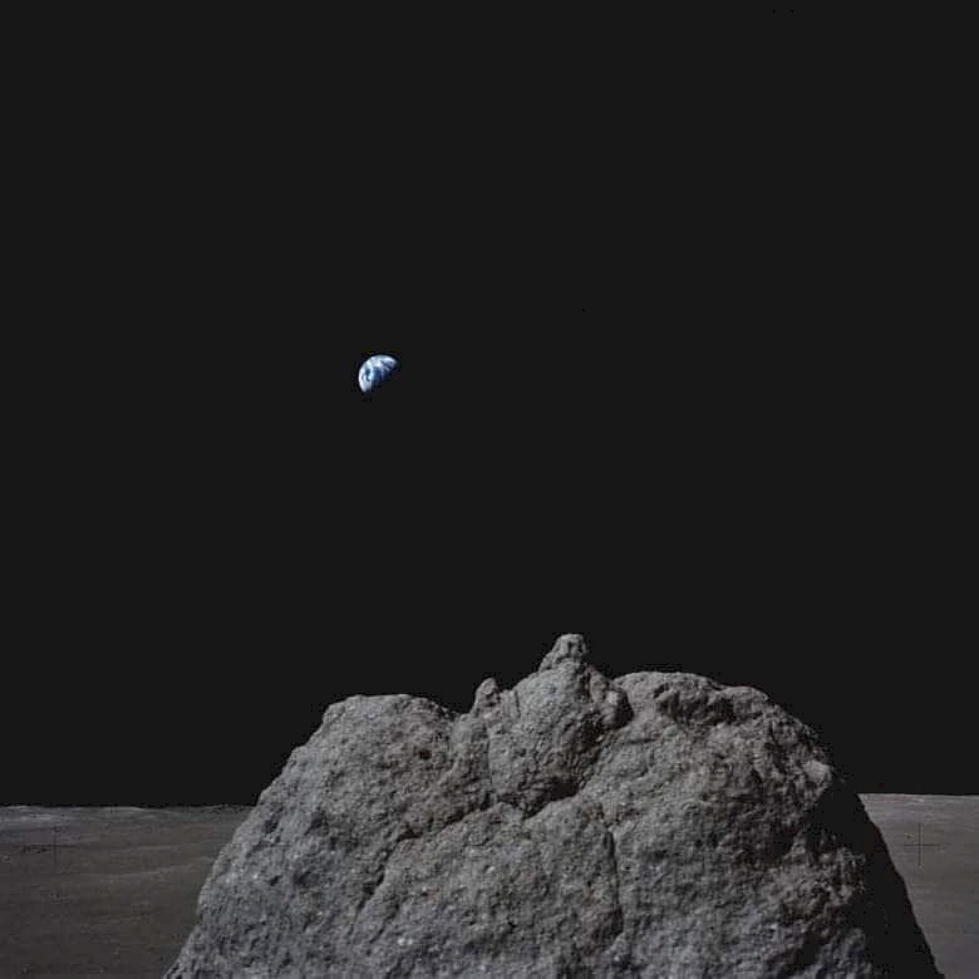 A mountain range at sunset, with peaks illuminated in red hues, under a moody, cloud-filled sky.