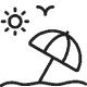 • A scenic beachside view with lounge chairs, umbrellas, and a clear sky over calm waters, creating a tranquil and relaxing atmosphere.