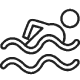 • A modern building with a large, illuminated swimming pool in front, surrounded by lounge areas, under a partly cloudy evening sky.